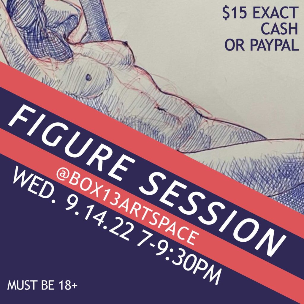 Box 13 ArtSpace is happy to host a Figure Drawing session on September 1 from 7:00pm to 9:30pm. This event will be run by current member Peter Broz @peter_broz in our Front Gallery Space. Cost to participate is $15.00 and can be paid via Paypal (@Box13ArtSpace ) or in person with exact cash. All skill levels are welcome to participate. You must be eighteen years old or older to attend. Those that attend must be respectful of the model and others in the session. No photography allowed. Please be on time and the front door will be locked at 7:10 pm. Street parking only.