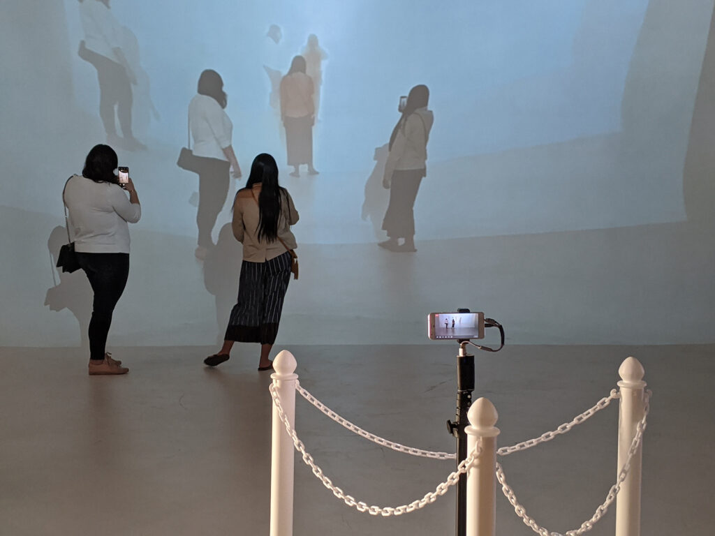ARCOS’ interactive media installation, Potential Future Pasts, serves as a staged rehearsal of possible cyborg realities. Audience-participants use their bodies to assert their agency as humans entangled within a digital system: to embrace their cyborgian reality, they must experiment with physicality and virtuality.