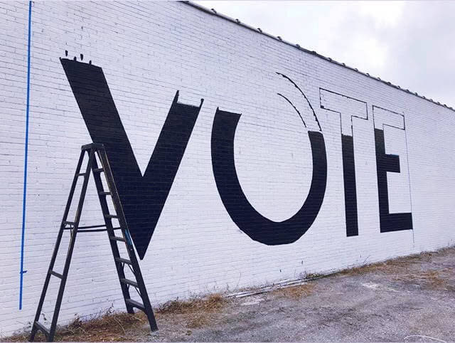 VOTE mural in progress